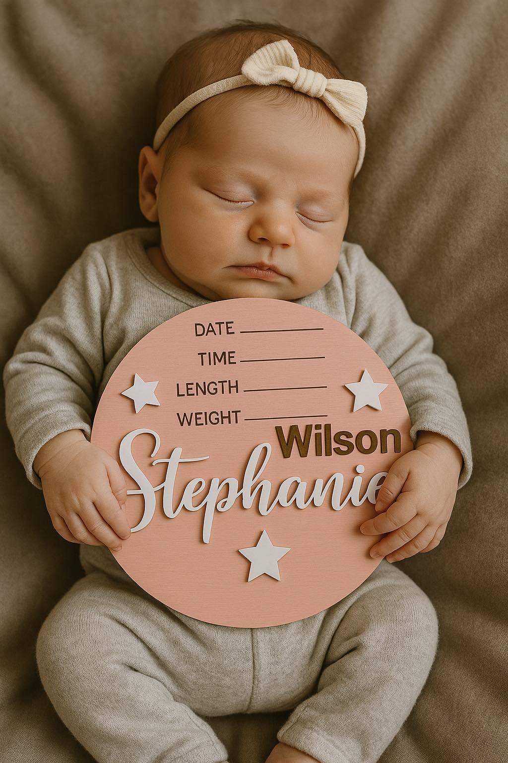 Our signature wooden baby name sign is the perfect way to announce the arrival of your little one. ❤With a beautiful font pairing and a special area for birth stats, this sign allows you to share the joyous news with friends and family. ❤These unique, one-of-a-kind signs make an ideal baby shower gift, a memorable name announcement for hospital photos, or a cherished keepsake to treasure for years.❤